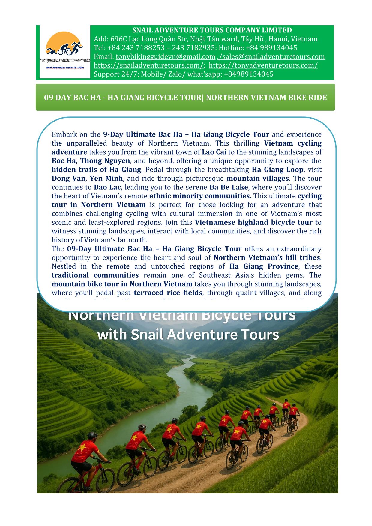 Embark on a once-in-a-lifetime Ha Giang Loop Cycling Tour, a spectacular Vietnam mountain biking tour that immerses you in the heart of Northern Vietnam’s untouched landscapes. This 9 day Ha Giang Loop cycling itinerary begins with a scenic Bac Ha to Ha Giang bike tour, passing through remote ethnic minority villages and vibrant Bac Ha ethnic markets. As part of a multi-day cycling tour Vietnam travelers dream of, you’ll conquer thrilling routes like the Thong Nguyen bike ride, Ho Thau biking trail, and the breathtaking Vinh Quang cycling route during this unforgettable Hoang Su Phi cycling adventure. Designed for seasoned adventurers seeking challenging cycling routes Vietnam, the journey continues through the winding Ha Giang bicycle loop, highlighting destinations such as Yen Minh mountain cycling, the rugged beauty of the Dong Van bike tour, and the cultural richness of the Bao Lac cycling loop.