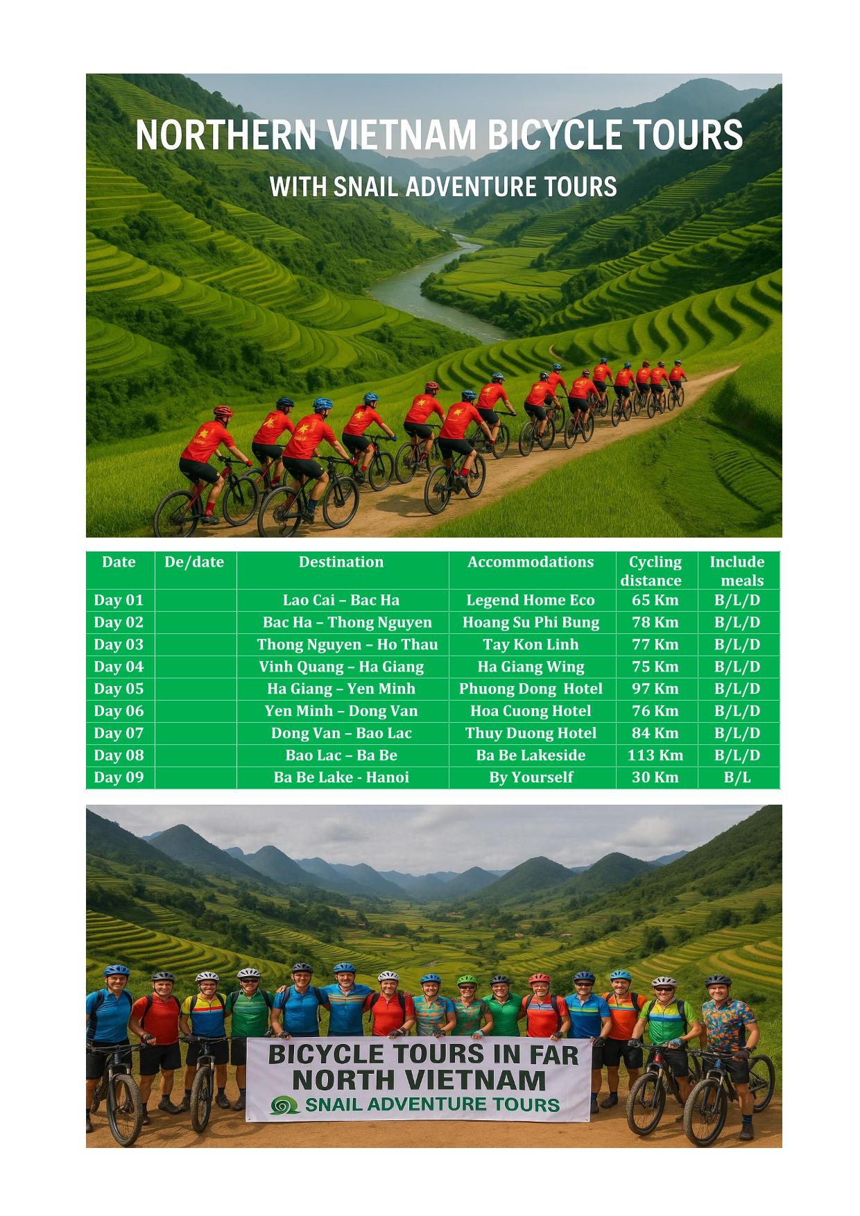 This Northern Vietnam cycling tour offers more than just epic terrain—it’s a deep dive into culture and nature, making it the best cycling tour in Ha Giang region. Discover the tranquil shores with Ba Be Lake cycling, and conclude your Bac Ha to Ba Be Lake cycling route by returning to Hanoi, full of stories and stunning memories. Whether you're seeking eco tourism Vietnam cycling, a remote cycling tour Vietnam, or simply a cultural biking experience Vietnam, this adventure delivers it all. Ideal for those interested in Northern Vietnam bikepacking tour, off-the-beaten-path Vietnam biking, or even those curious about the Ha Giang motorbike loop, this journey offers an unparalleled look at Vietnam’s hidden cycling gems. Follow the Ha Giang cycling itinerary or customize it using a Ha Giang Loop route map, and explore Vietnam by bike: Ha Giang Loop—a true gem of Vietnam bike tour 2025 and beyond. From cycling Hoang Su Phi rice terraces to riding through ethnic villages, this is the ultimate mountain cycling holiday Vietnam and a highlight of Ha Giang adventure travel and Northern Vietnam cycle holidays.