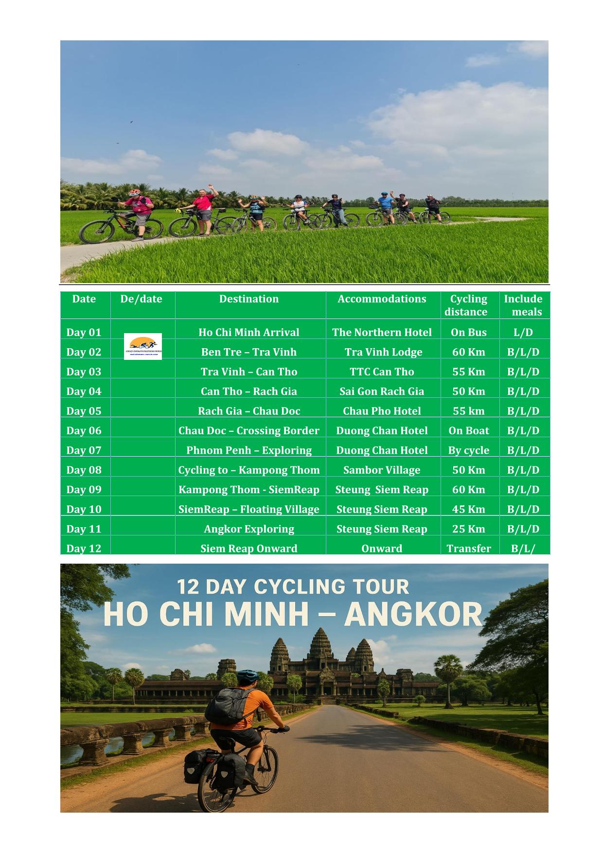 Embark on an unforgettable 12-day Mekong – Siem Reap bicycle tour, expertly designed for adventure seekers and culture enthusiasts looking for a comprehensive Vietnam travel itinerary and seamless Cambodia exploration. Your journey begins with a warm Ho Chi Minh City arrival, followed by a full day of Ho Chi Minh City exploration, where you’ll dive into the vibrant street life and rich history of this iconic metropolis. Pedal through the tranquil landscapes of the Ben Tre Coconut Kingdom, then continue your adventure with a scenic Ben Tre to Tra Vinh biking route, offering intimate views of rural life along the Mekong. The Mekong Delta cycling tour leads you further with a captivating Tra Vinh to Can Tho ride, culminating in an evening immersed in Can Tho nightlife and markets. Wake up to the bustle of the famous Cai Rang floating market before cycling from Can Tho to Rach Gia, and embarking on the picturesque Rach Gia to Chau Doc journey. A thrilling Chau Doc to Phnom Penh speed boat transfer carries you across the border into Cambodia.
