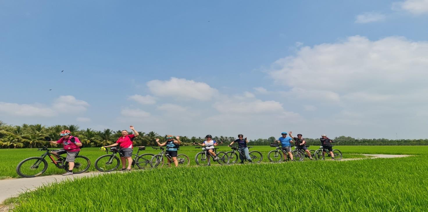 Welcome to Vietnam! Upon arrival in Ho Chi Minh City, look out for the Siem Reaper welcome sign at the arrivals gate. You’ll be transferred to your hotel to unwind, relax by the pool, or begin your first adventure exploring this vibrant and historic city—your gateway to the ultimate Mekong Delta cycling adventure. In the evening, your expert tour guide will meet you at the hotel at 17:00 hrs for a professional bike fitting, ensuring you're fully prepared for the incredible Vietnam Cambodia bike tour ahead. Afterward, enjoy a delicious welcome dinner with your fellow travelers as we celebrate the start of this unforgettable Mekong Delta to Phnom Penh bike tour, the first leg of your cycling trip through Southeast Asia. Get ready for a guided Mekong River bike trip that will take you through stunning landscapes, rich cultures, and ancient temples on an epic cycling tour from Vietnam to Cambodia.