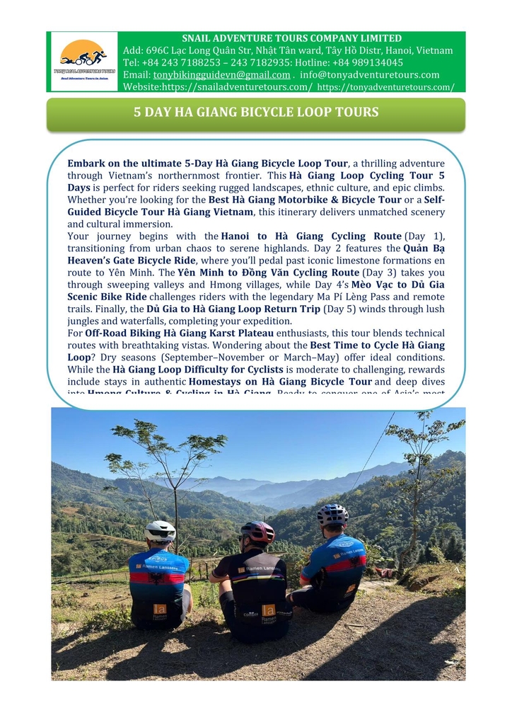 Embark on an unforgettable Ha Giang loop bicycle tour with this thrilling 5 day Ha Giang cycling itinerary designed for adventurers seeking an authentic Ha Giang bike loop tour Vietnam experience. Ideal for those looking for a Ha Giang motorbike alternative, this Northern Vietnam cycling tour offers a truly immersive journey through one of Vietnam’s most rugged and remote provinces. This adventure bike tour Vietnam takes you along the Ha Giang scenic cycling route, showcasing high mountain passes, ethnic minority villages, and panoramic landscapes that define the Ha Giang off-the-beaten-path tour appeal. Perfect for enthusiasts of mountain biking Ha Giang loop trips, it ranks among the best Vietnam bicycle tours.
