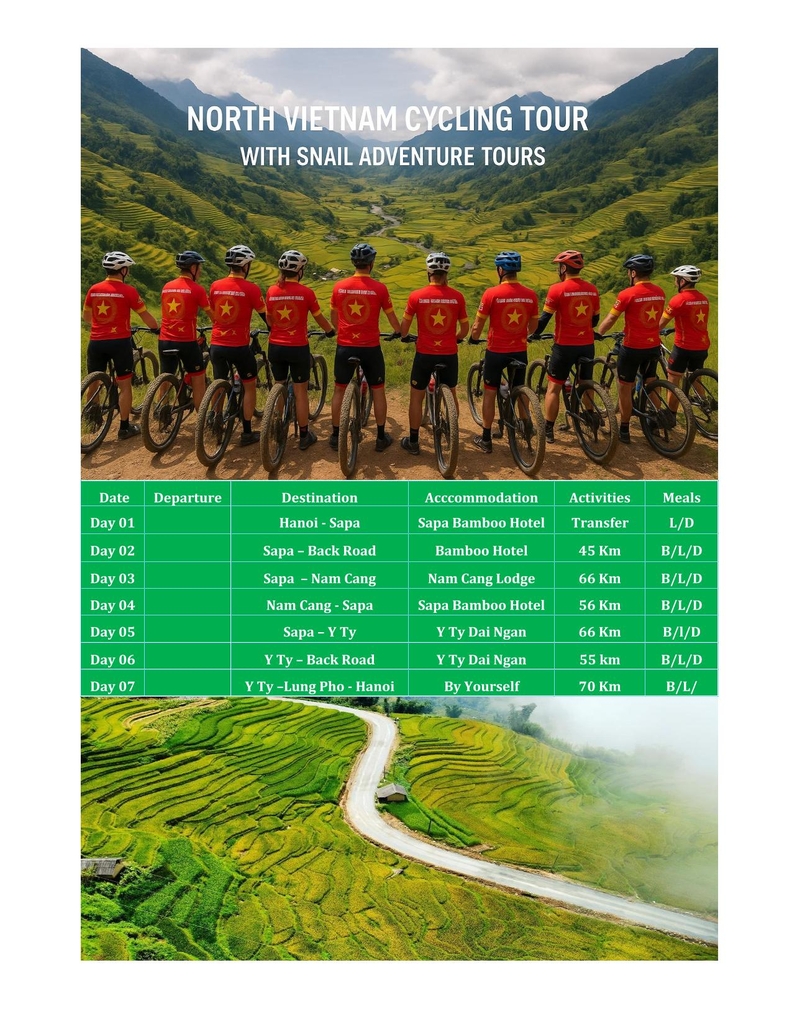 This expertly curated Sapa bike tour itinerary takes you deep into the heart of the mountains, offering one of the most scenic and culturally rich cycling tours from Sapa to Y Ty. Perfect for riders looking for a true Vietnam mountain bike adventure, the tour features backroad cycling in Vietnam, remote hill tribe encounters, and challenging climbs along the breathtaking Y Ty cycling route. As you navigate through the mountain biking Sapa region, discover hidden trails during your biking tour in Northern Vietnam, from the peaceful rice terraces of Nam Cang village to the dramatic Y Ty off-the-beaten-path cycling landscapes. The journey includes a convenient Hanoi to Sapa bike transfer, ensuring a smooth start to your Lao Cai cycling tour. Highlights include cycling through the vibrant Nam Cang Red Dao village, ascending the panoramic Y Ty mountain pass bike route, and descending the rugged Lung Pho cycling trail.